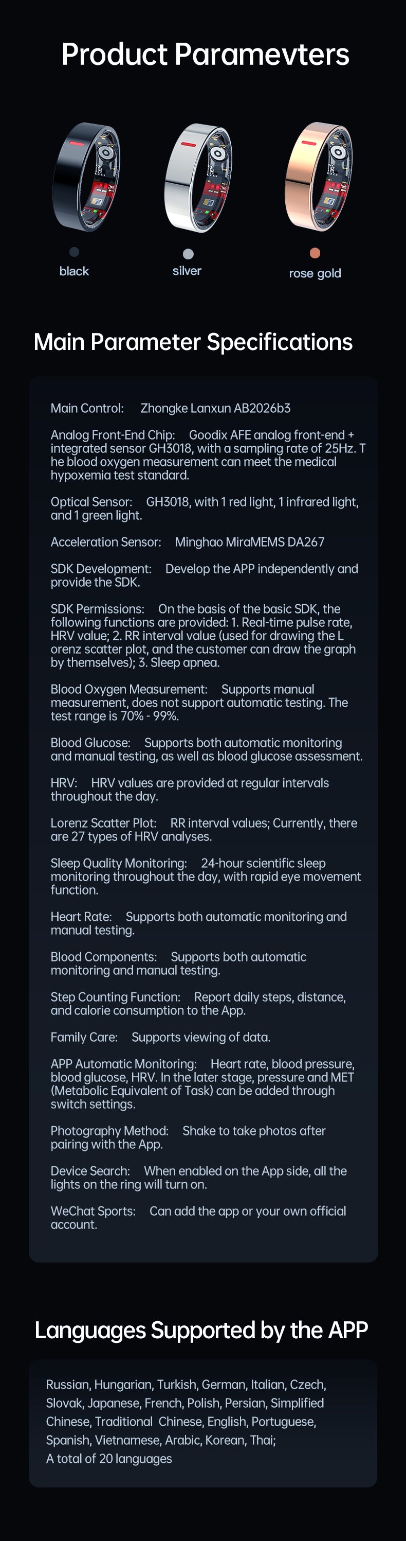 HP58Smart Ring ,Exquisite stainless steel,Heart Rate Monitoring, Blood Oxygen Monitoring, Blood Pressure Monitoring, Step Counting, Exercise, Remote Care