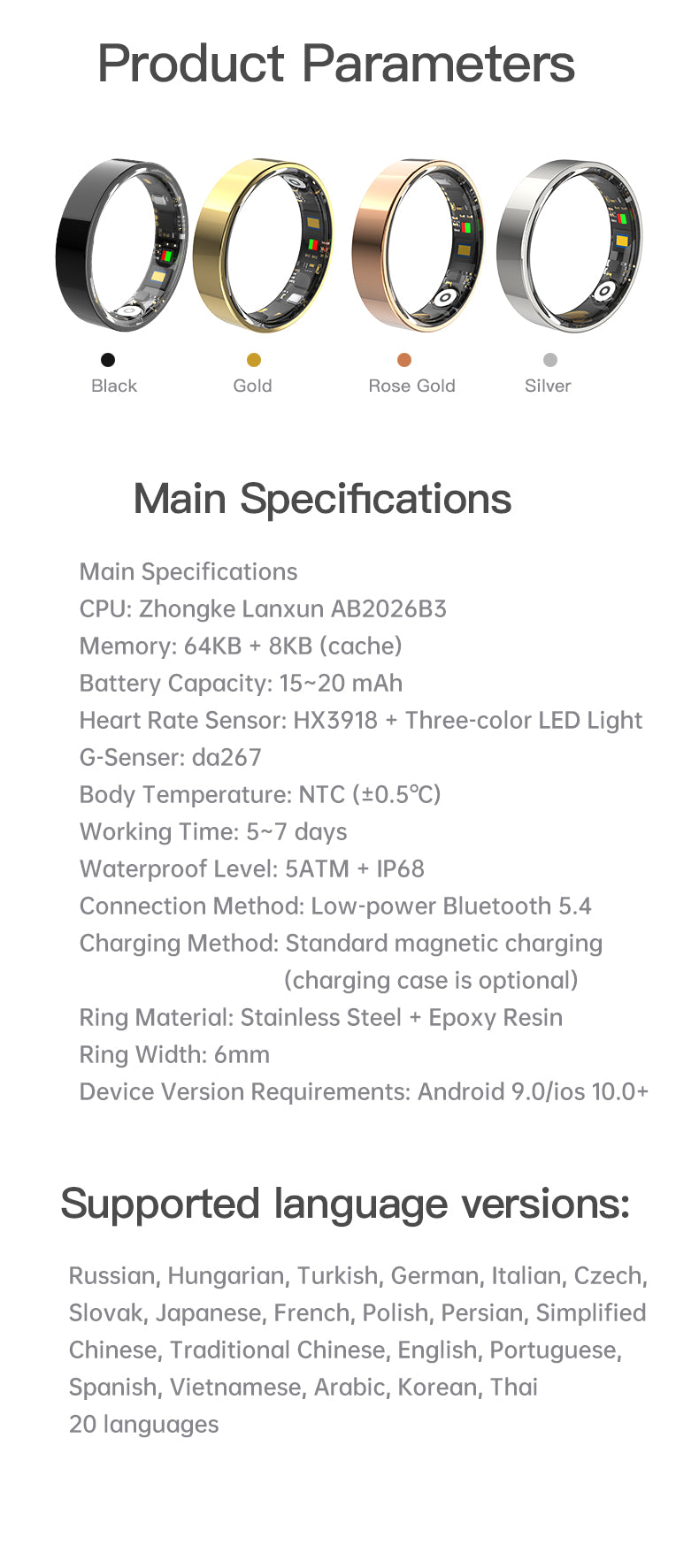 HP57 Smart Ring ,Exquisite stainless steel,Heart Rate Monitoring, Blood Oxygen Monitoring, Blood Pressure Monitoring, Step Counting, Exercise, Remote Care